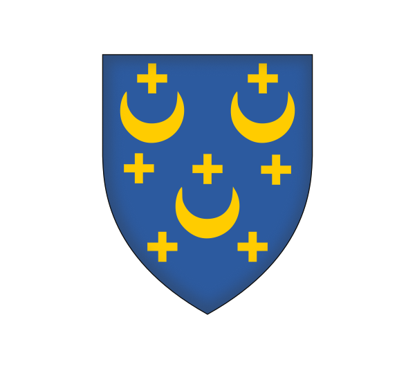 BlazonShield: Azure, three crescents between seven crosses Or. |