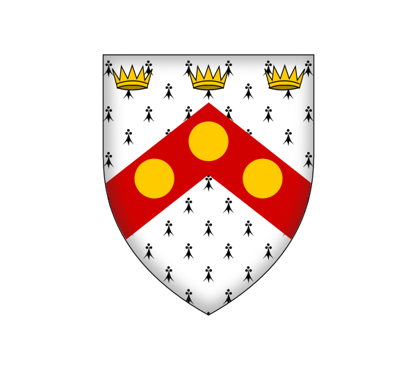 Shield: Ermine on a chevron Gules three bezants, and in chief three antique crowns Or
