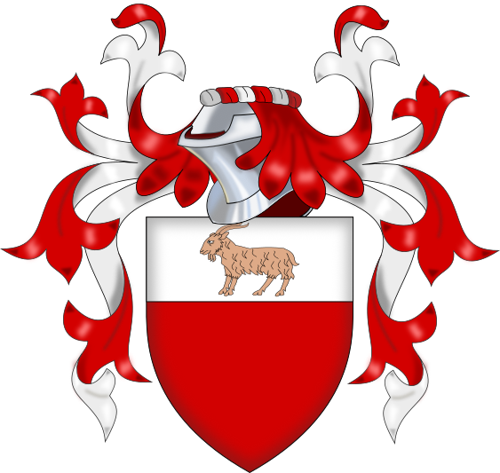 BlazonShield: Gules, on a chief Argent a goat statant Proper. |