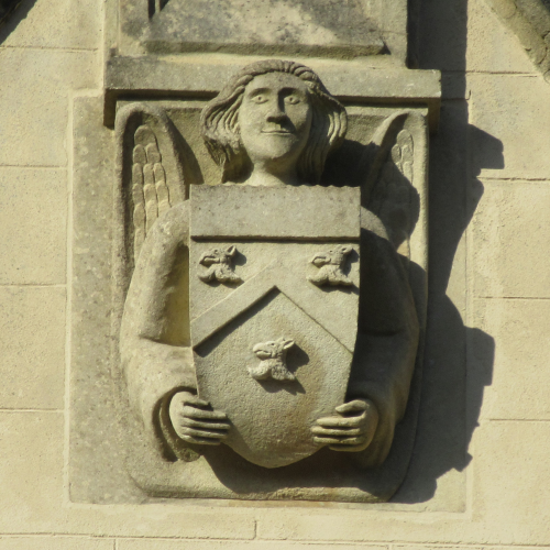 Arms of John Henry Vivian, held by an angel, at Singleton Abbey. |