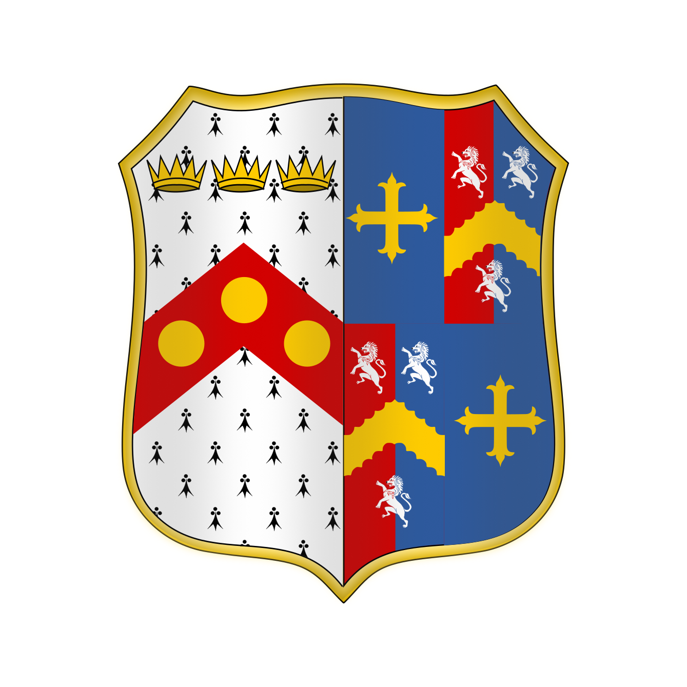 Warde's coat of arms quarters those of his own family, the Wardes of Squerrye, with those of his heiress mother.